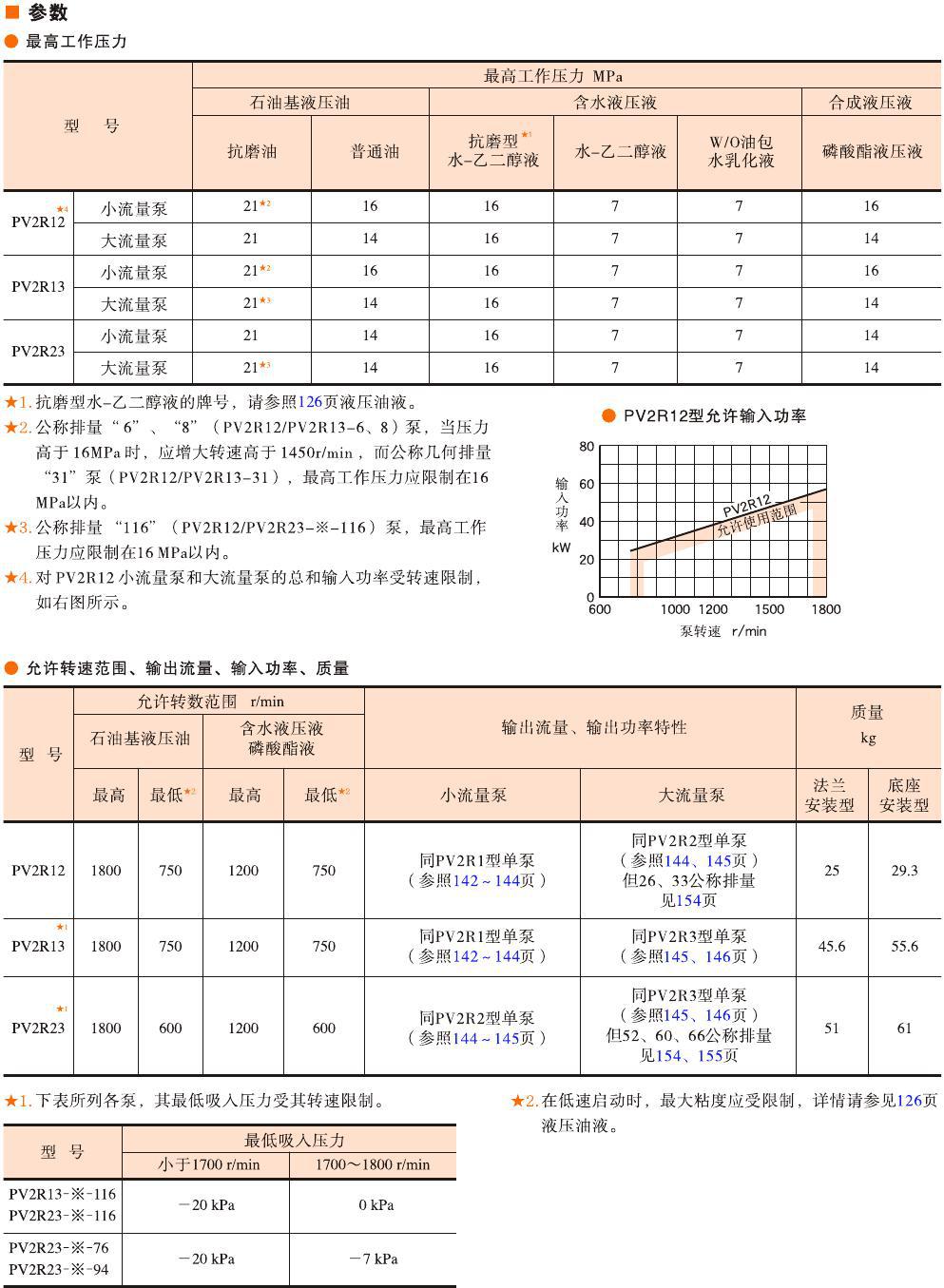 油研液壓泵PV2R系列的壓力,轉(zhuǎn)速,排量,流量,效率