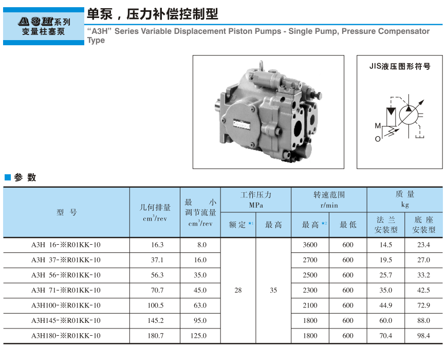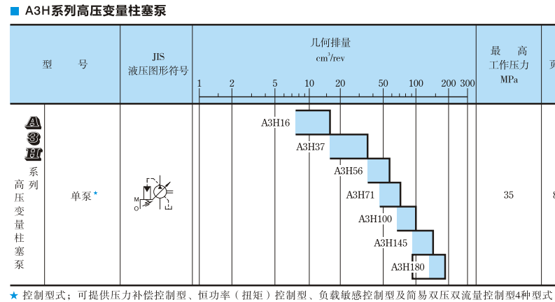 A31116~A311180的7個(gè)規(guī)格中,包含有16.3~180.7cm3/rev范圍內(nèi)。