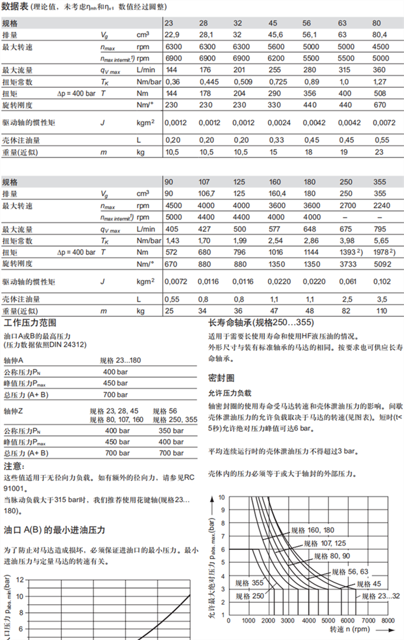 A2FE插裝式定量馬達(dá)性能參數(shù):