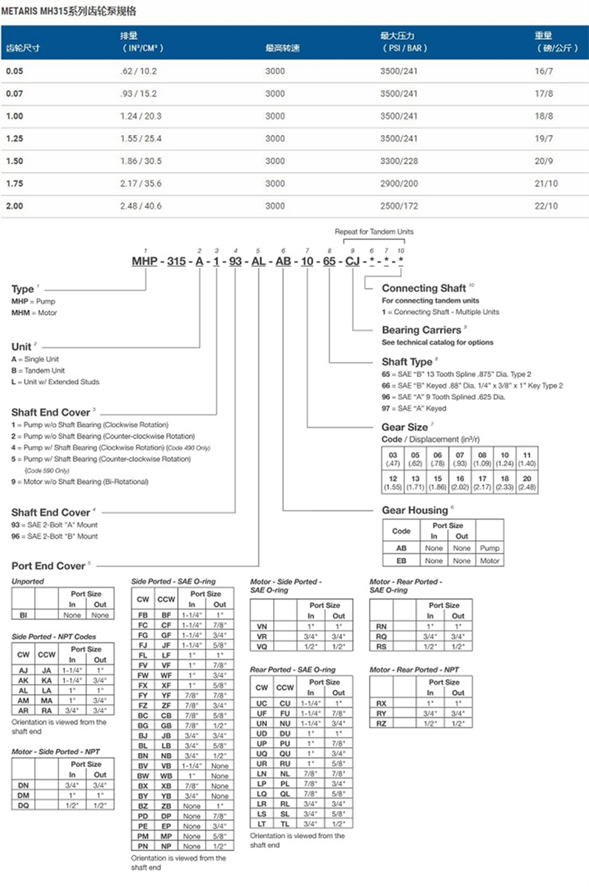 METARIS MH315系列齒輪泵