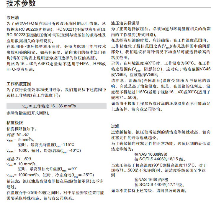 力士樂軸向柱塞固定泵 A4FO技術參數(shù):