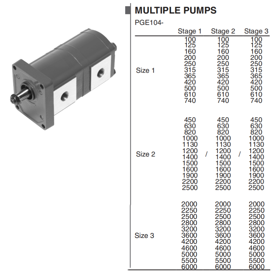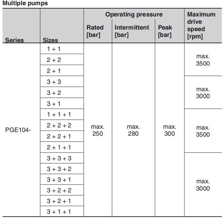 • 可能的組合是相同尺寸的泵或按泵尺寸遞減順序的單元