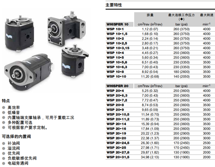 威世(WHISPER)系列擁有國際專利技術(shù),專門的低噪音新型齒輪泵,軸、法蘭和接口尺寸及形式有多種標(biāo)準(zhǔn)可選(包括SAE,DIN,EUROPEAN等),應(yīng)用廣泛。