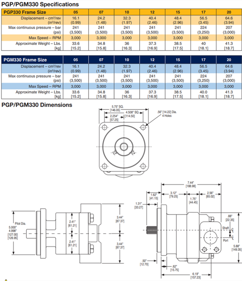 派克鑄鐵齒輪泵PGP330系列參數(shù):