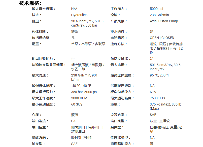 總之,Parker派克金杯系列液壓泵與電機以其卓越的性能、廣泛的應用領域以及先進的技術優(yōu)勢,成為了流體傳動與控制領域的佼佼者。無論是開式還是閉路應用,金杯系列都能為用戶提供可靠、高效、易用的解決方案。未來,隨著技術的不斷進步和應用領域的不斷拓展,相信Parker派克金杯系列液壓泵與電機將會迎來更加廣闊的發(fā)展前景。